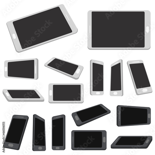Wall mural : Multiple view mobile devices - set of mobile with blank screen