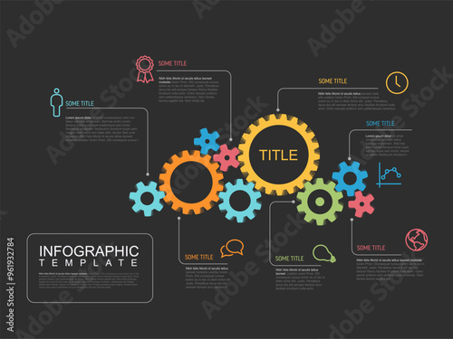 Multipurpose infographic report template made from cogwheels icons and descriptions - infochart templWall mural