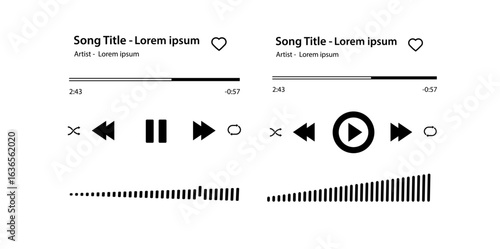 Wall mural : Music player song plaque with buttons loading bar equalizer sign sound wave and frame for album phot