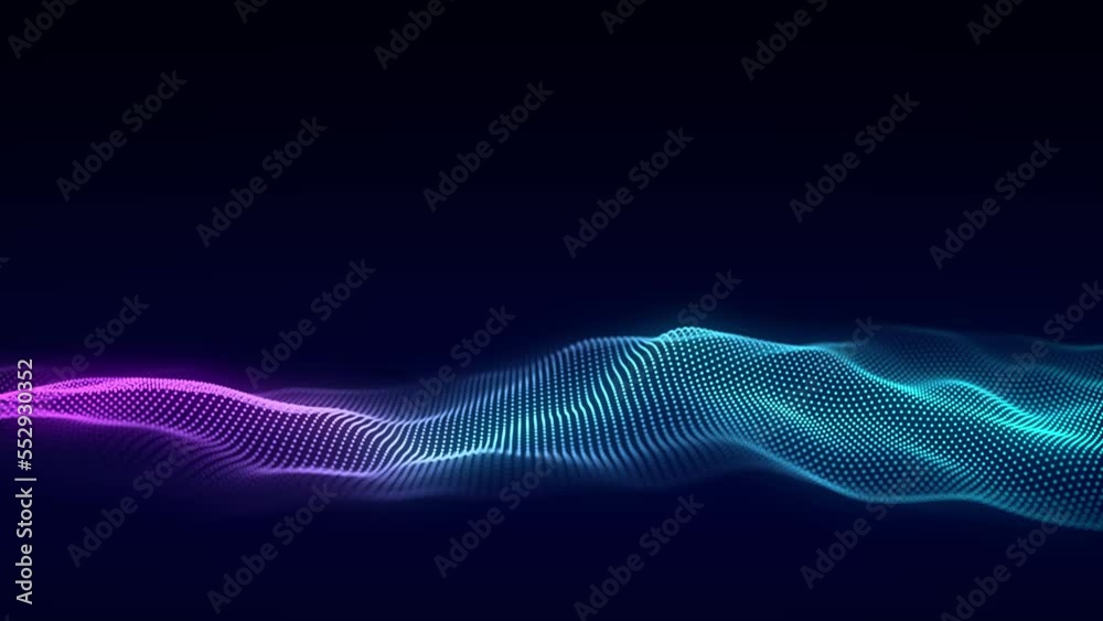 The watermark will not be included on Wall mural.: Music wave of particles - big data visualization - abstract blue background with a dynamic wave - 3d re