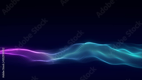 Wall mural music wave of particles. big data visualization. abstract blue background with a dynamic wave. 3d re