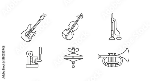 The watermark will not be included on Wall mural.: Musical instruments line icon set for web and app designs