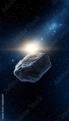 The watermark will not be included on Wall mural.: Mysterious asteroid drifting in the dark outer space with glowing stars and cosmic wonders above