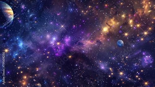 Wall mural mysterious cosmic landscape with planets and nebulae in deep space