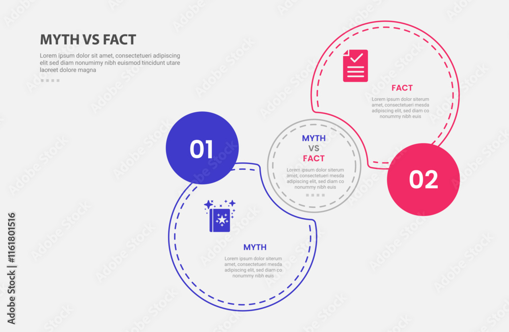 The watermark will not be included on Wall mural.: Myth vs facts infographic outline style with 2 point comparison template with join or venn circle wi