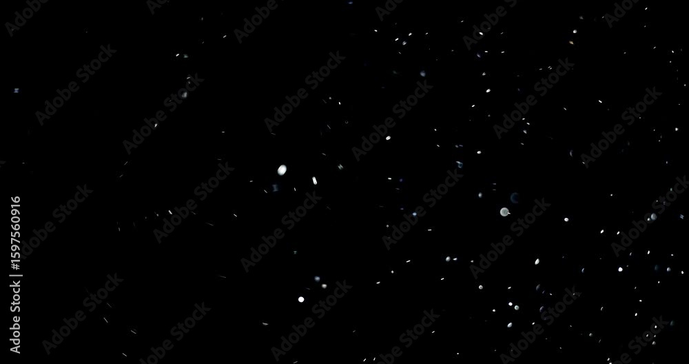 The watermark will not be included on Wall mural.: Natural organic dust particles floating on black background - dynamic dust particles randomly float i