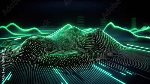 Wall mural nature conservation concept. digital landscape with neon lines and points creating a 3d effect.