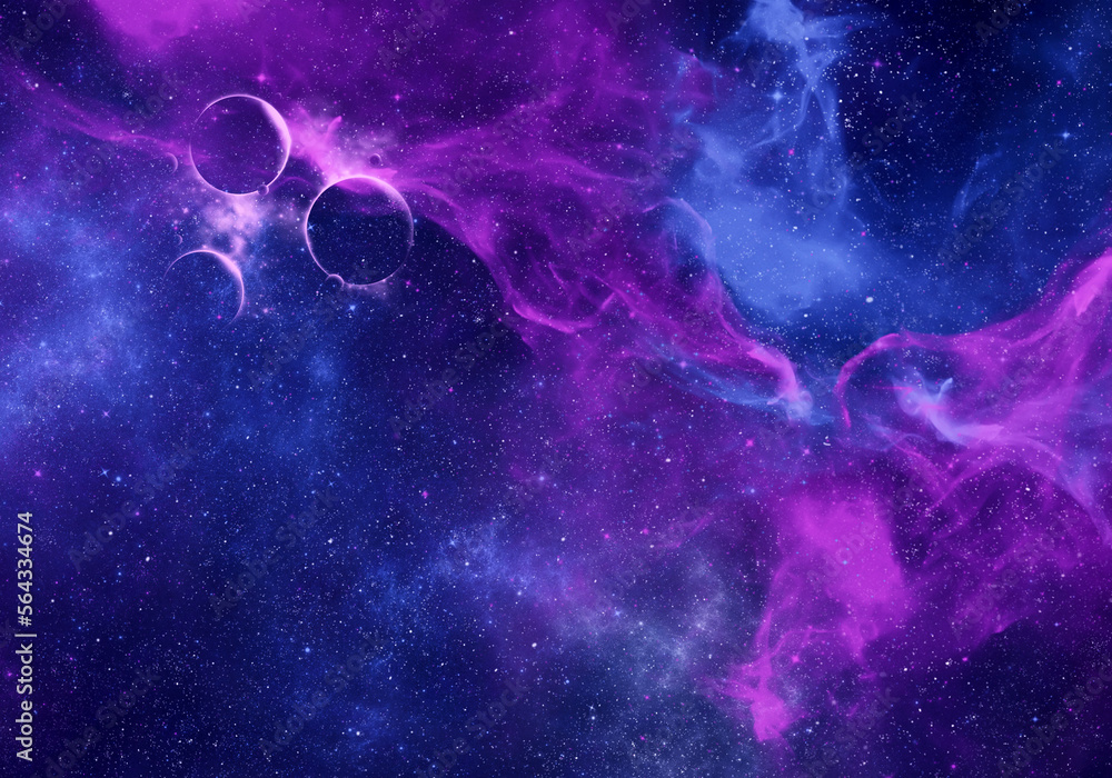 The watermark will not be included on Wall mural.: Nebula, stars and planets in night sky - outer space background -
