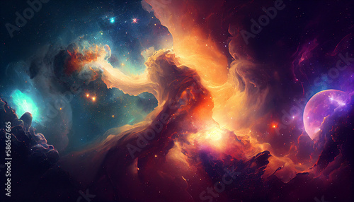 Wall mural nebula and galaxies in space abstract cosmos background ai generated image - Wall murals Wall mural nebula and galaxies in space abstract cosmos background ai generated image - Wall murals