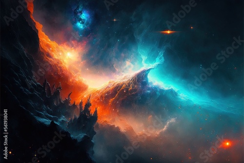 Wall mural nebula and galaxies in the deep space. abstract cosmos univese background