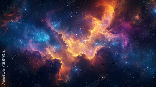 The watermark will not be included on Wall mural.: Nebula and stars in deep space, with a vibrant mix of colors and cosmic dust - ai generate -