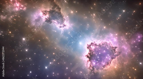 Wall mural : Nebula clouds colourful travel and star loop - 3d rendering - this clip is a cloud colourful with star