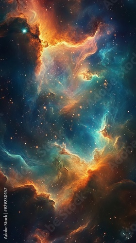 The watermark will not be included on Wall mural.: Nebula clouds forming in outer space with vivid colors
