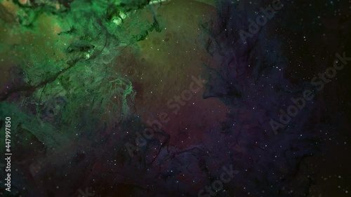 The watermark will not be included on Wall mural.: Nebula clouds travel to planet - passing nebula clouds with star glow and shine light to planet -