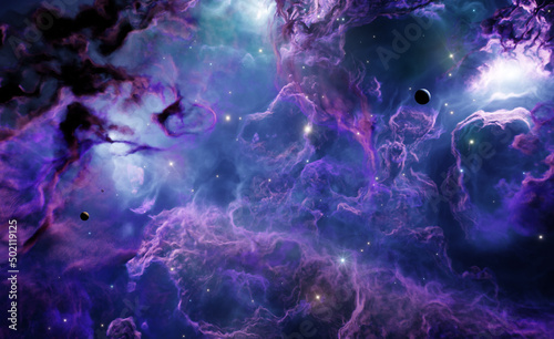The watermark will not be included on Wall mural.: Nebula in outer space, planets and galaxy