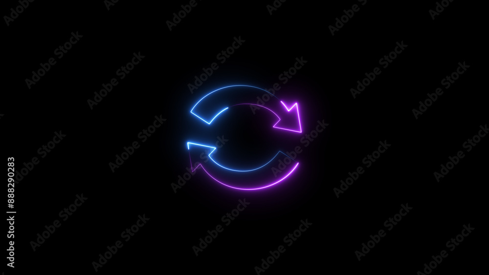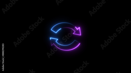 Wall mural neon arrow loading and uploading icon concept. neon arrow rotation background