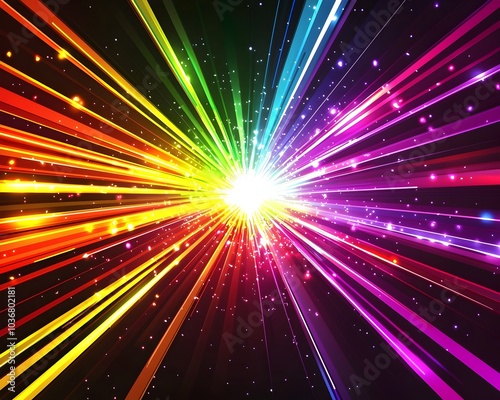 The watermark will not be included on Wall mural.: Neon background with bursting rays and colorful streaks creating a dynamic explosive effect