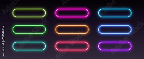 Wall mural : Neon button frames, gradient glowing borders, isolated ui elements - futuristic rounded action button