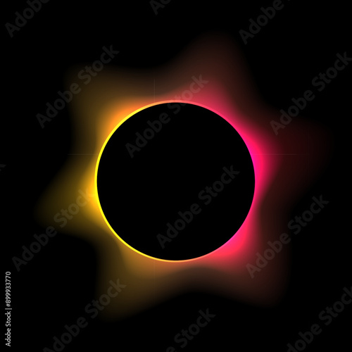 Wall mural neon color round frame with gradient effect. abstract blurred red yellow light circle background. co