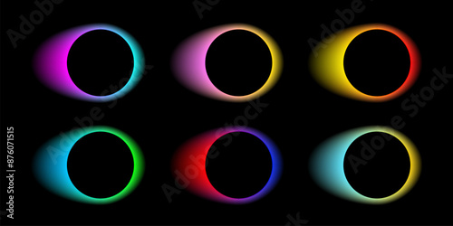 Wall mural : Neon color round frames with gradient effect - abstract rainbow light circles background - colored bri