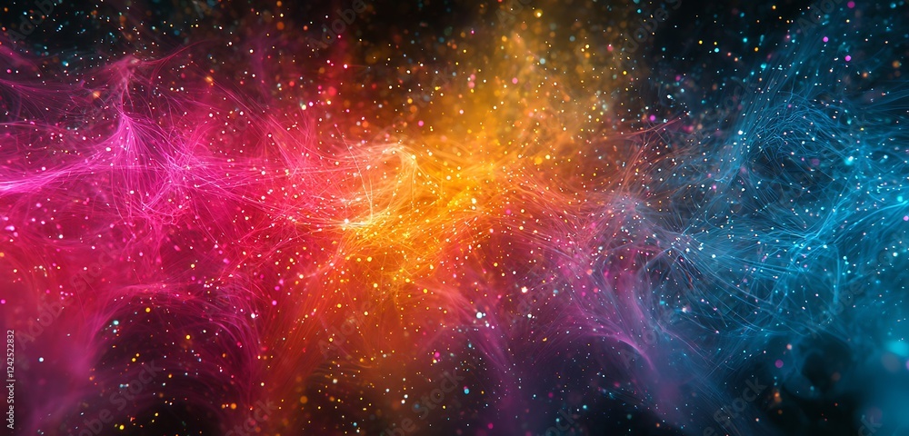 The watermark will not be included on Wall mural.: Neon-colored fiber optic lines create a stunning abstract texture, evoking a sense of speed and tech