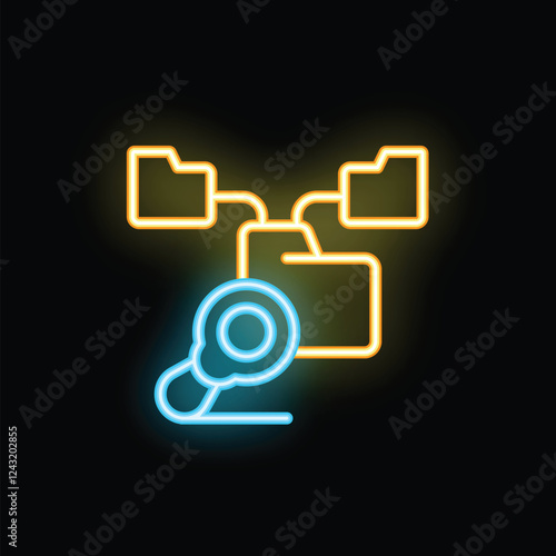 Wall mural neon computer mouse connecting folders sharing files on black background - Wall murals Wall mural neon computer mouse connecting folders sharing files on black background - Wall murals