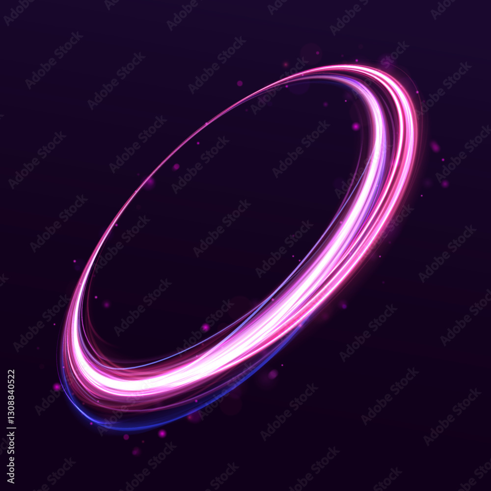 Wall mural neon ellipse in the form of speed. glowing spiral. abstract neon color glowing lines background. the