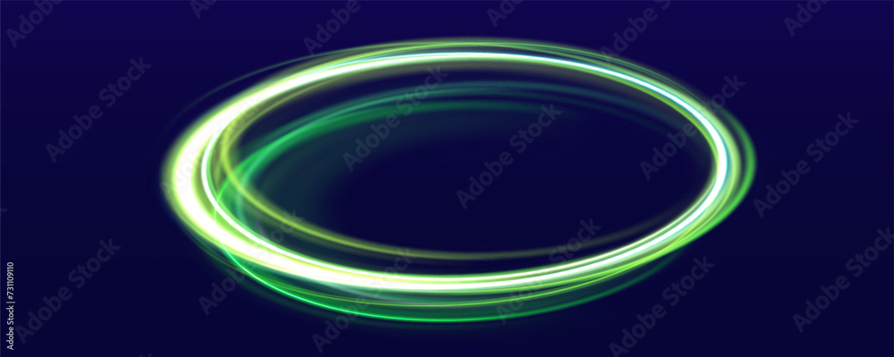 Wall mural neon ellipse in the form of speed. glowing spiral. abstract neon color glowing lines background. the