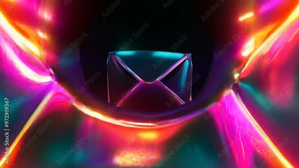 The watermark will not be included on Wall mural.: Neon envelope with shimmering colors on a dark background