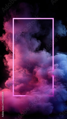 Wall mural : Neon frame in colorful smoke on black background creates a modern abstract design element for digita