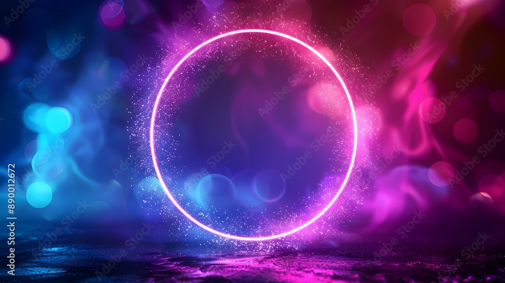 The watermark will not be included on Wall mural.: Neon frame with glowing electric elements colorful background concept with copy space