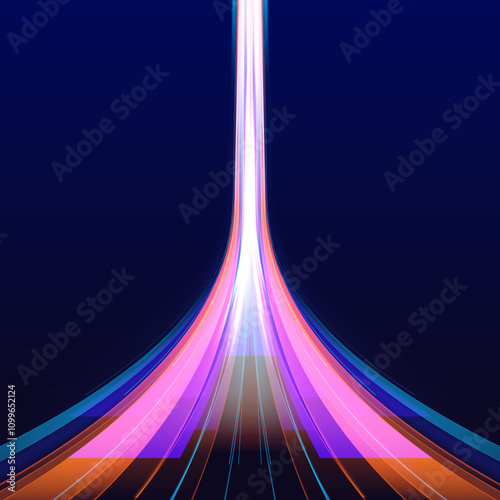 Wall mural : Neon futuristic network technologies on a dark background with movement and speed effects, featuring