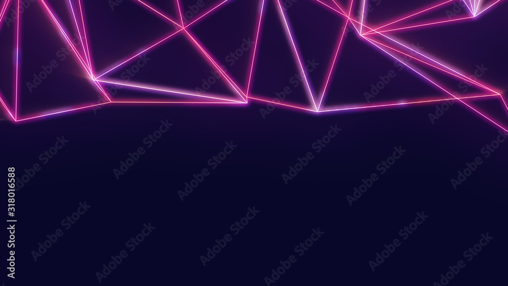 The watermark will not be included on Wall mural.: Neon futuristic wireframe surface - triangula glowing structure - connected lines triangle technology