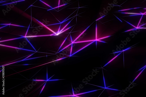 The watermark will not be included on Wall mural.: Neon futuristic wireframe surface - triangula glowing structure - connected lines triangle technology