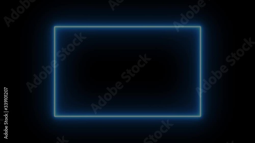 The watermark will not be included on Wall mural.: Neon glowing blue flickering rectangular frame on black background graphic element