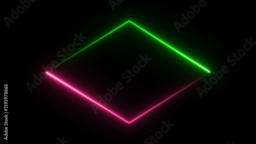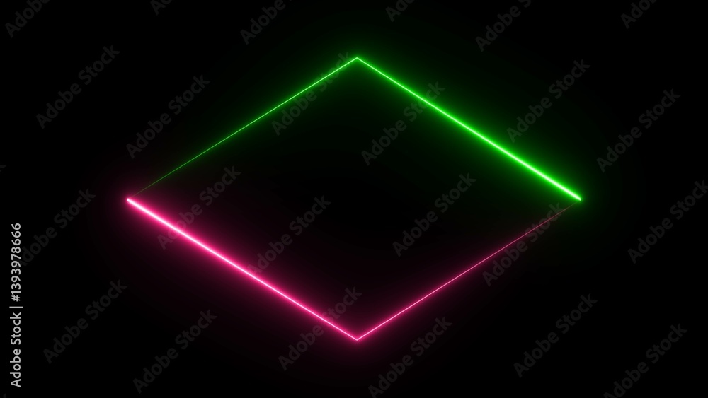 The watermark will not be included on Wall mural.: Neon glowing rectangular empty frame illustration - abstract glowing neon rectangle border frame on b