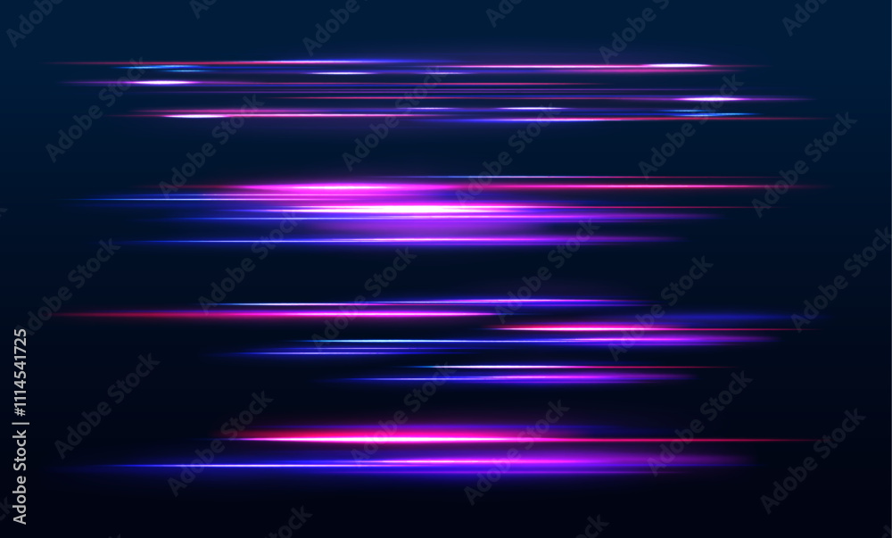 Wall mural : Neon glowing red and blue lines with fast particle motion and laser beams create a captivating effec