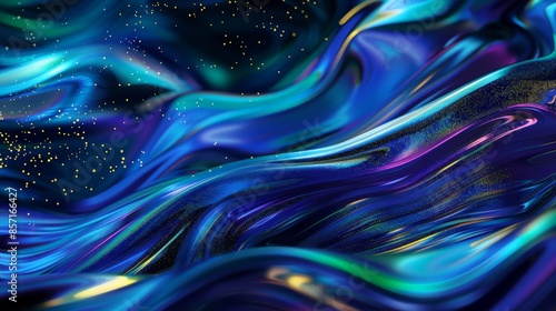 The watermark will not be included on Wall mural.: Neon green and cobalt blue with wave patterns light trails and metallic textures - background