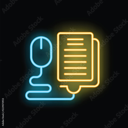 Wall mural neon icon of a computer mouse with its wire connecting to digital documents representing online cont - Wall murals Wall mural neon icon of a computer mouse with its wire connecting to digital documents representing online cont - Wall murals