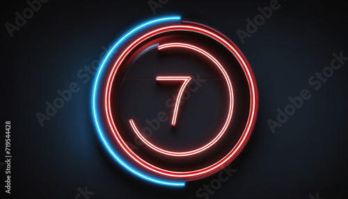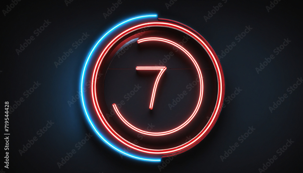 Wall mural neon illuminated 3d number 75 in circular frame on black background
