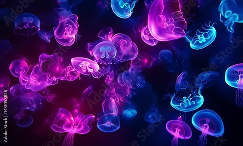 The watermark will not be included on Wall mural.: Neon jellyfish pulsating with radiant colors in an underwater galaxy setting made with generative ai