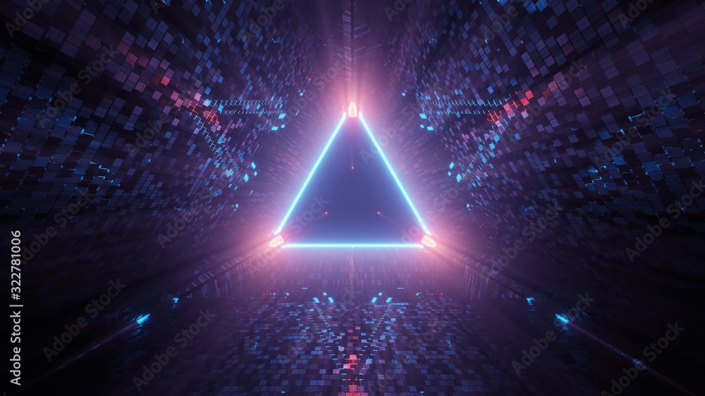 The watermark will not be included on Wall mural.: Neon laser lights in a triangular shape with a black background