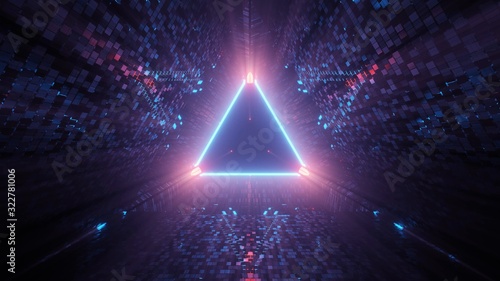 Wall mural neon laser lights in a triangular shape with a black background - Wall murals Wall mural neon laser lights in a triangular shape with a black background - Wall murals