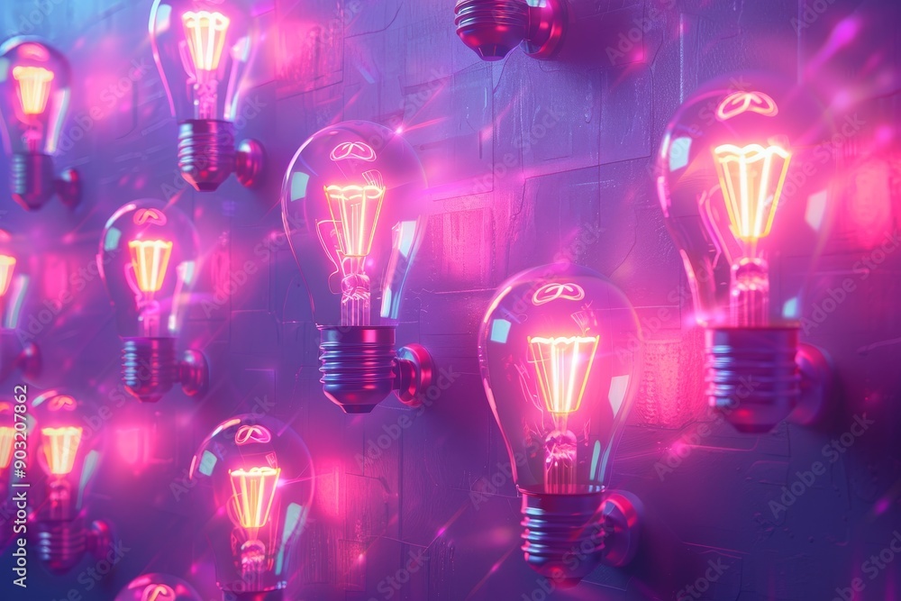 The watermark will not be included on Wall mural.: Neon light bulbs in colorful array highlighting creative thinking and modern design