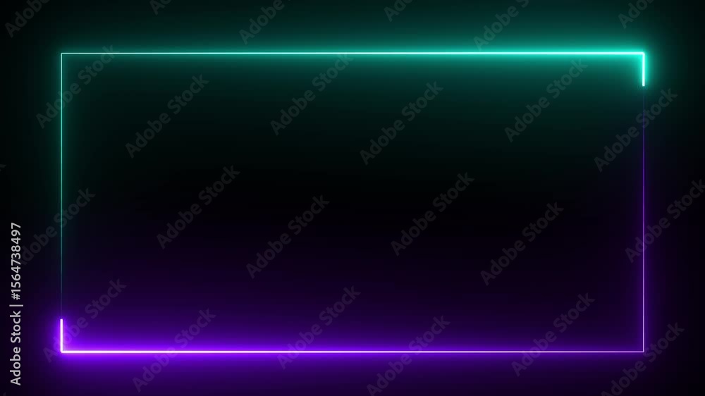 The watermark will not be included on Wall mural.: Neon light rectangle frame border animated - rectangular frame made of two moving neon lights overlay