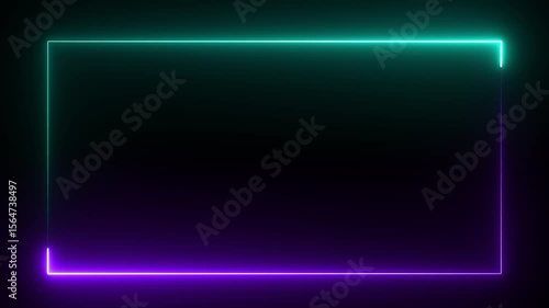 Wall mural neon light rectangle frame border animated. rectangular frame made of two moving neon lights overlay