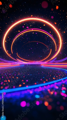 The watermark will not be included on Wall mural.: Neon lights creating abstract circular shapes background