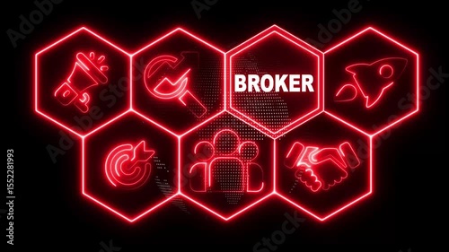 The watermark will not be included on Wall mural.: Neon line mortgage broker concept button on a futuristic computer screen display with hexagon shapes