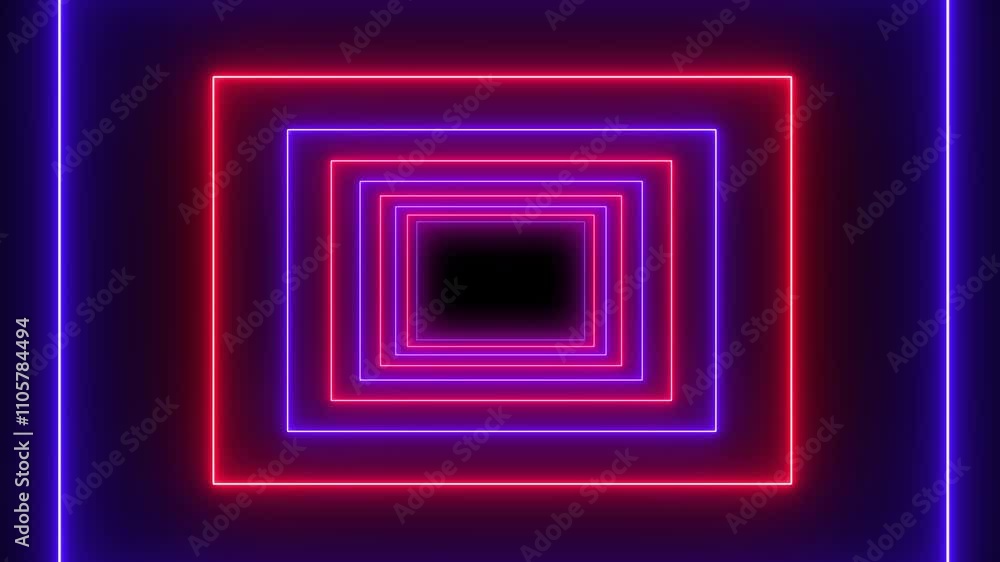The watermark will not be included on Wall mural.: Neon line rectangle tunnel background - abstract futuristic neon tunnel square line animation on a bl