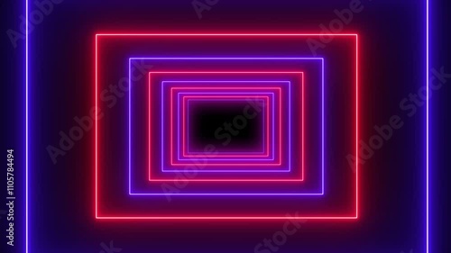 Wall mural : Neon line rectangle tunnel background - abstract futuristic neon tunnel square line animation on a bl